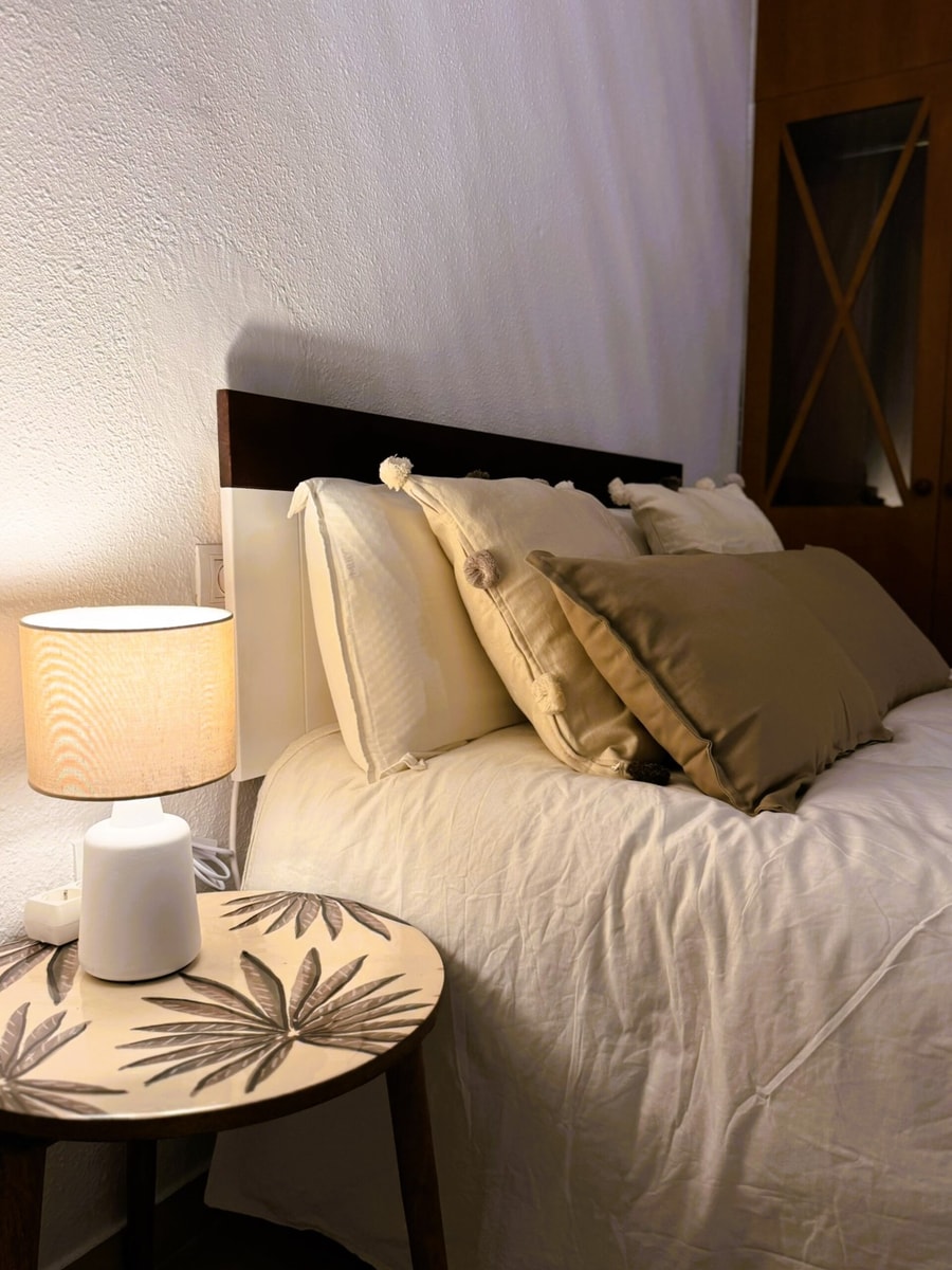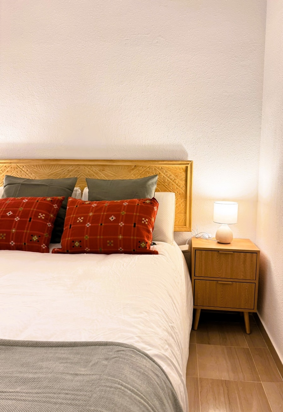 Consta de dos dormitorios con cama de matrimonio, zona de almacenaje y mesita de noche para cargar los teléfonos o dejar un libro. En el dormitorio principal además hay un gran armario empotrado y una pequeña zona de office para trabajar si es necesario.