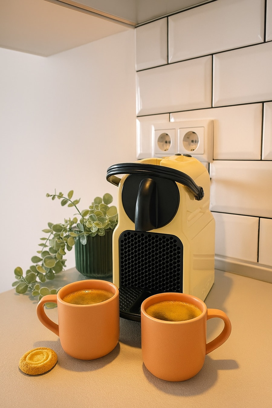 Es un apartamento tipo loft con cocina totalmente equipada, con tostador, máquina de café y hervidor de agua. Mini frigorífico y plancha.